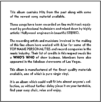 Major Label's stock liner notes: